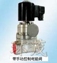 当手动控制时:旋转手动开关,常闭式手动开关指向开的方向(常开式向开的方向旋转2~4圈)电磁阀打开,介质流通;旋转手动开关,常闭式手动开关指向关的方向(常开式向关的方向旋转到不动为止)电磁阀关闭,介质截止。